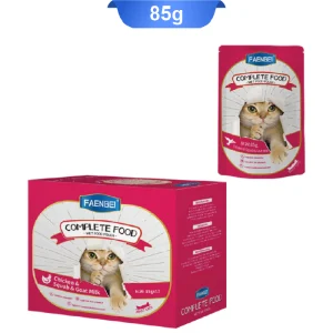 غذای کامل تر گربه فنبی طعم مرغ و پرنده و شیر وزن 85 گرم کد 103207 Faenbei Complete Food