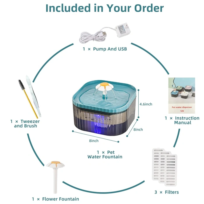 آبخوری اتوماتیک سگ و گربه دارای تصفیه آب طرح گل (دارای LED)
