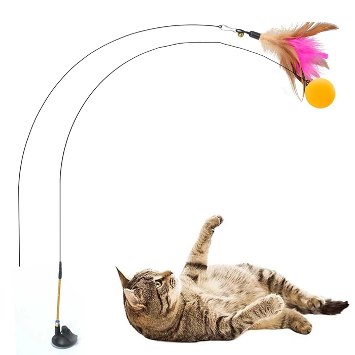 ویژگی‌های خاص اسباب بازی میله ای بلند گربه به همراه پرهای جذاب و توپ: