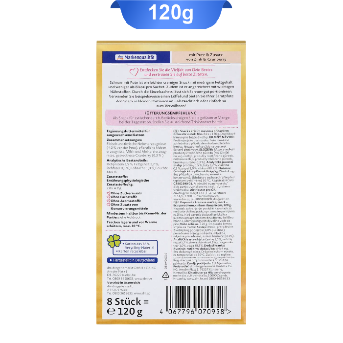 بستنی گربه دین بستس طعم بوقلمون و کرنبری (8 عددی) وزن 120 گرم Dein Bestes Zusatz von Zink & Cranberry