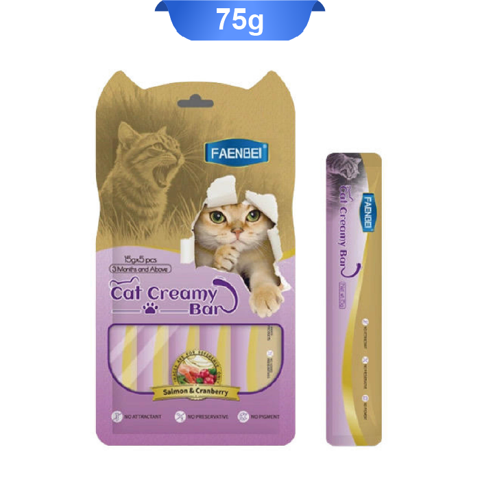 بستنی گربه فنبی طعم سالمون و ذغال اخته (5 عددی) وزن 75 گرم کد 106290 Faenbei Cat Creamy Bar Salmon & Cranberry