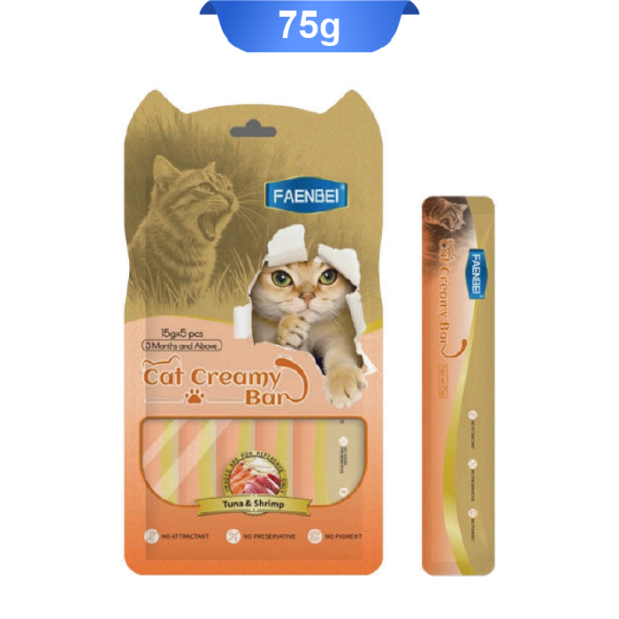 بستنی گربه فنبی طعم ماهی تن و میگو (5 عددی) وزن 75 گرم کد 106292 Faenbei Cat Creamy Bar Tuna & Shrimp