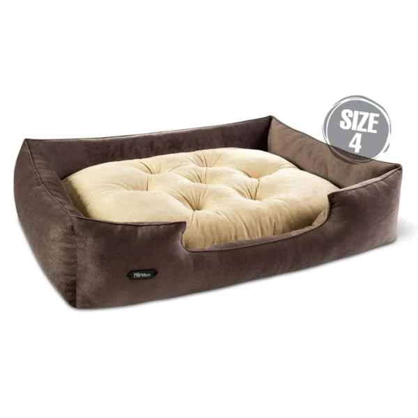 مزایای ویژه جای خواب سگ و گربه جنس پارچه مبلی درجه یک قهوه ای با تشک کرم