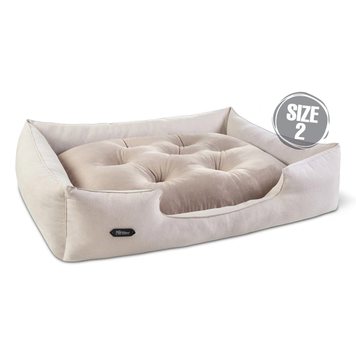 جای خواب سگ و گربه جنس پارچه مبلی درجه یک شیری با تشک بژ نیناپت ابعاد 63x82x22 سانتی متر کد 2109