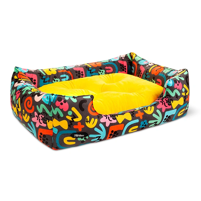 جای خواب سگ و گربه جنس پارچه مبلی درجه یک تشک رنگ زرد مدل منحنی نیناپت ابعاد 52x72x22 سانتی متر کد 2383