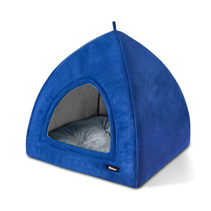 خانه سگ و گربه از جنس مخمل نرم رنگ آبی کاربنی نیناپت ابعاد 46x46x55 سانتی متر