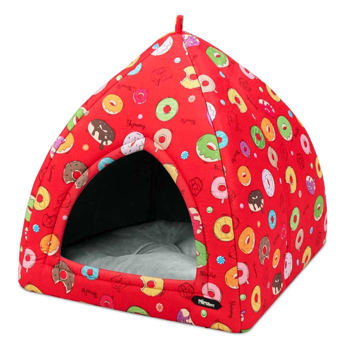 خانه سگ و گربه از جنس مخمل نرم و ضخیم قرمز مدل دونات
