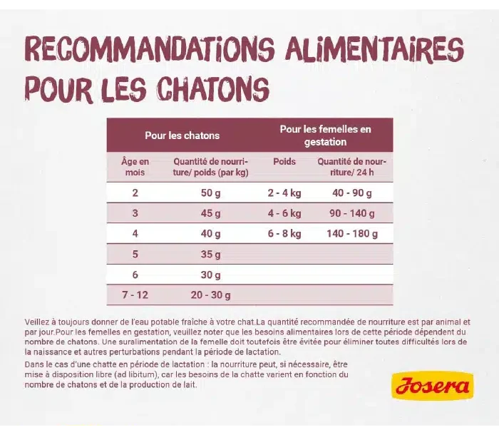 توصیه میشود که برای استفاده از غذای بچه گربه جوسرا طبق داده های زیر و بر اساس وزن گربه عمل کنید: