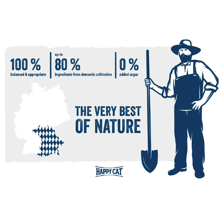 فلسفه اصلی برند هپی کت بر پایه تغذیه طبیعی، سالم و نزدیک به طبیعت شکل گرفته است. در تولید غذاهای این برند از پروتئینهای حیوانی باکیفیت، غلات سالم، سبزیجات، ویتامینها و ریزمغذیهای ضروری استفاده میشود و خبری از طعمدهندههای مصنوعی، رنگهای شیمیایی و نگهدارندههای مضر نیست. همچنین وجود اسیدهای چرب امگا ۳ و ۶، ویتامینهای ضروری و مواد معدنی، باعث میشود محصولات Happy Cat در حفظ سلامت پوست و مو، دستگاه گوارش، سیستم ایمنی و انرژی روزانه گربهها بسیار مؤثر باشند.