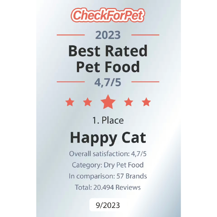 هپی کت (Happy Cat) یکی از معتبرترین برندهای آلمانی در حوزه تولید غذای گربه است که زیرمجموعه شرکت قدیمی و شناختهشده Interquell میباشد. تاریخ این شرکت به سال 1765 بازمیگردد و از دهه ۱۹۵۰ وارد صنعت غذای حیوانات خانگی شد. Happy Cat با تکیه بر تجربه چند قرن فعالیت در حوزه تغذیه و بهرهگیری از تکنولوژی روز آلمان، محصولاتی باکیفیت، سالم و متعادل تولید میکند که نیازهای غذایی گربهها را به بهترین شکل برطرف میسازد.