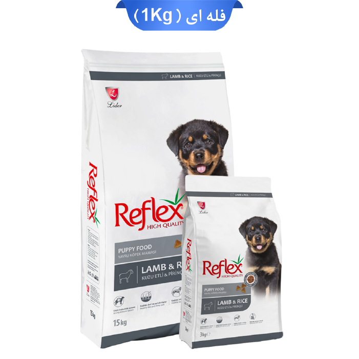 غذا خشک توله سگ رفلکس طعم بره و برنج مدل روت وایلر پاپی وزن 1 کیلوگرم (زیپ کیپ فله) Reflex Dog Puppy