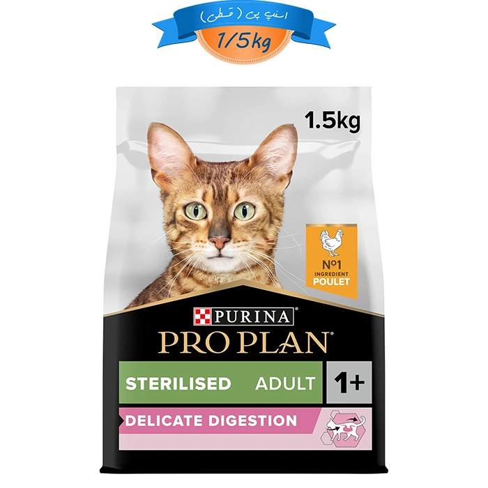 غذا خشک گربه عقیم شده پروپلن طعم مرغ مدل دلیکیت دایجسشن وزن 1/5 کیلوگرم ProPlan Sterilised Delicate Digestion
