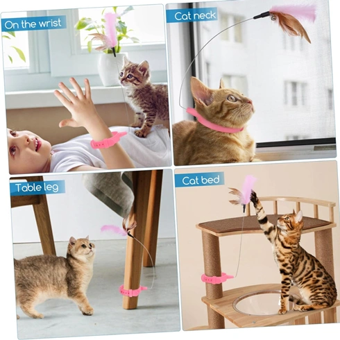- دور دست خودت یا دور مچ پایت بسته میشود تا با تکان دادن دست یا پا، گربهات عاشقانه دنبال پر بپرد و یک بازی تعاملی و خندهدار بین شما شکل بگیرد.