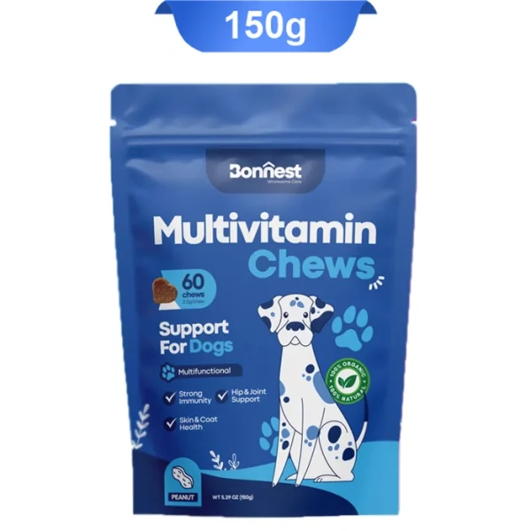 مکمل جویدنی سگ بونست مدل مولتی ویتامین طعم بادام زمینی وزن 150 گرم Bonnest Multivitamin Chews