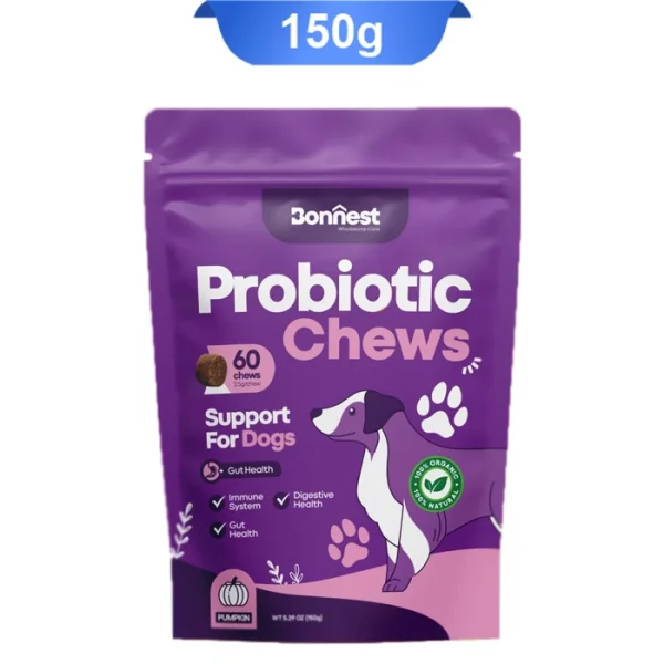 مکمل جویدنی سگ بونست پروبیوتیک برای تقویت روده طعم کدو تنبل وزن 150 گرم Bonnest Probiotic Chews