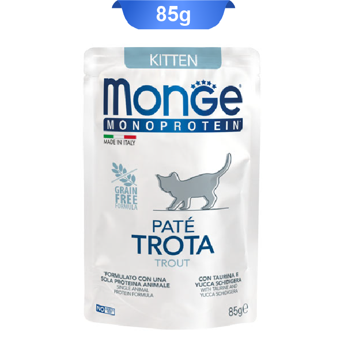 پوچ بچه گربه مونژه طعم ماهی قزل آلا مدل پته وزن 85 گرم Monge Kitten
