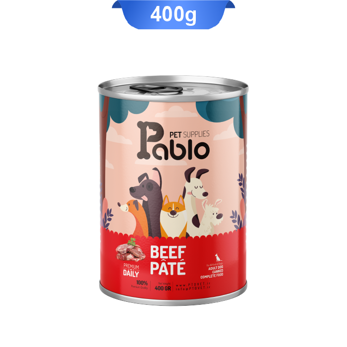 کنسرو پته سگ بالغ پابلو طعم گوشت خالص وزن 400 گرم Pablo Dog